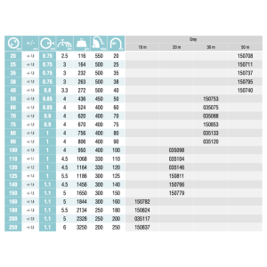 Šifra Debelina stene [mm] Debelina spirale [mm] Upogibni polmer [mm] Dolžina cevi [m] Teža izdelka [g/m] Največji vakuum pri 23°C [mbar] Notranji premer cevi [mm] Zaloga Cena Nakup Natisni