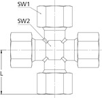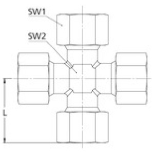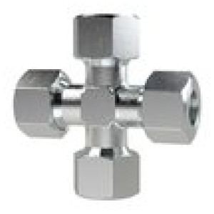 Cross fitting, Pipe exterior Ø 5 mm, PN 100, A/F1 12, A/F2 9, galvanised steel
