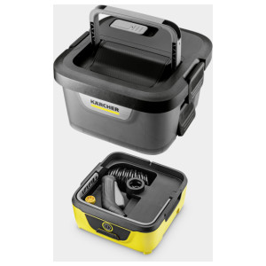 Kompakten in prenosljiv: OC 4 je Kärcherjev akumulatorski ročni tlačni čistilnik, idealen za vse, ki potrebujejo čistilno rešitev na poti. Zahvaljujoč vgrajeni litij-ionski bateriji in velikemu 8-litrskemu rezervoarju za vodo lahko čistite, ne da bi bili odvisni od električnega omrežja ali priključkov za vodo; preprosto napolnite z vodo in začnite. Zahvaljujoč tehnologiji šob Kärcher je lahko čiščenje nežno, a učinkovito. Ne glede na to, ali ste v kampu, po kolesarjenju, po blatnem pohodu ali samo na domačem vrtu – OC 4 je idealna hitra rešitev za različna opravila vmesnega čiščenja. LED lučka zagotavlja informacije o trenutnem stanju napolnjenosti baterije in preostali moči. Zavzame minimalno prostora – napravo in vse dodatke lahko shranite v prazen rezervoar za vodo, da prihranite prostor. 2,8 metra dolga spiralna cev zagotavlja fleksibilnost in velik radij gibanja. Pršilna pištola ima funkcijo zaskoka za dodatno udobje. Za še širši obseg uporabe je na voljo široka izbira dodatne opreme.