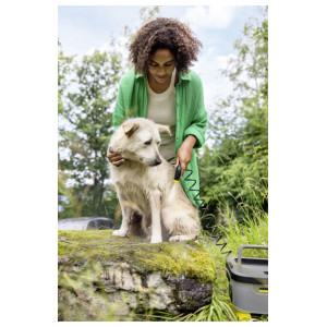 - Prilagodljiv za uporabo pri številnih različnih čistilnih opravilih, npr. za kolesa, vrtno in kamp opremo, pse ali otroške vozičke.