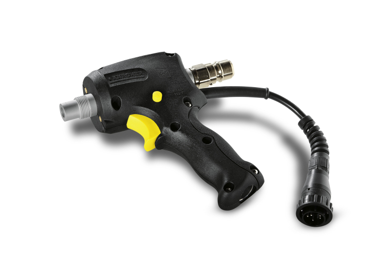 Ergonomsko oblikovana razpršilna pištola. Zaradi kompaktne oblike je ta pištola posebej lahka in priročna. Vključno z varnostno napravo, ki preprečuje nenamerno sproženje.