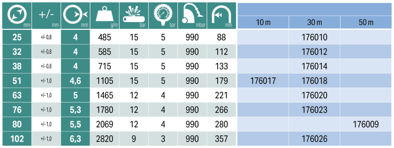 Nova generacija sesalno-tlačnih cevi z ojačano PVC spiralo, odporno na udarce, za najvišje zahteve glede kakovosti in zmogljivosti. Robustna, enostavna za uporabo in vsestransko uporabna, zanesljiva pri različnih aplikacijah.