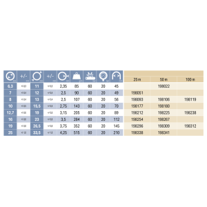 | Šifra | Debelina stene [mm] | Upogibni radij [mm] | Dolžina cevi [m] | Teža izdelka [g/m] | Notranji premer cevi [mm] | Zunanji premer cevi [mm] | Zaloga | Cena | Nakup | Natisni |