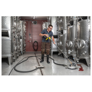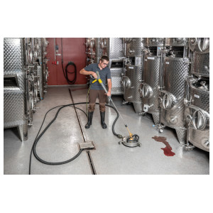 Zahvaljujoč avtomatskemu odsesavanju umazane vode je čiščenje notranjih in zunanjih površin s talno šobo FRV 30 Me iz nerjavečega jekla še učinkoviteje. Čiščenje z vročo vodo do 85 °C.