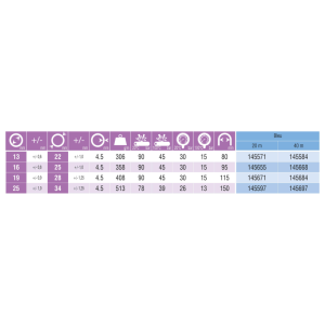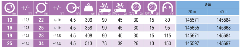 | Šifra | Delovni tlak pri 100°C [bar]: | Dolžina cevi [m] | Delovni tlak pri 20°C [bar]: | Porušni tlak pri 100°C [bar] | Upogibni radij [mm] | Porušni tlak pri 20°C [bar] | Teža izdelka [g/m] | Notranji premer cevi [mm] | Zunanji premer cevi [mm] | Zaloga | Cena | Nakup | Natisni |