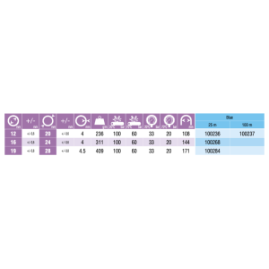 | Šifra | Debelina stene [mm] | Dolžina cevi [m] | Upogibni radij [mm] | Teža izdelka [g/m] | Notranji premer cevi [mm] | Zunanji premer cevi [mm] | Zaloga | Cena | Nakup | Natisni |