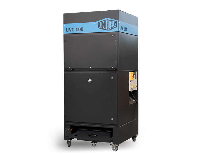 Rezalniki cevi UNIFLEX omogočajo čiste reze, vendar je nastajanje prahu, hlapov in vonjav neizogibno. Zato je UNIFLEX razvil sesalno in filtrirno napravo UVC 100 za hkratno uporabo do treh strojev za rezanje cevi ter UVC 50 za servisne delavnice. Uravnoteženo razmerje med volumskim pretokom in negativnim tlakom ohranja zrak čist med rezanjem hidravličnih cevi in ščiti upravljavce pred drobnimi delci. Večstopenjsko čiščenje izpušnega zraka deluje s funkcijo zaustavitve isker, ciklonsko filtrirno tehnologijo za predhodno ločevanje drobnih delcev, filtrom za delce za prah, HEPA filtrom za drobne delce in ogljikovim filtrom za nevtralizacijo vonjav – in vse to z 2-letno garancijo proizvajalca UNIFLEX.