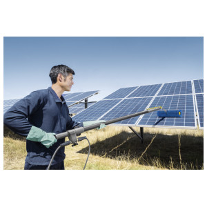 Če ta gibljivi zglob z nastavljivim kotom priključite na teleskopski nastavek Kärcher, postane popoln dodatek za našo valjčno krtačo 500 za čiščenje solarnih panelov.