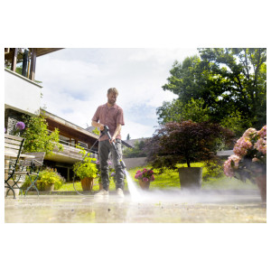 K 4 Comfort Premium je zmogljiv in priročen visokotlačni čistilnik, idealen za odstranjevanje zmerne umazanije v hiši in avtomobilu. Njegov dolgotrajen, vodno hlajen motor zagotavlja konstantno zmogljivost, medtem ko priročni kolut za cev s cevjo PremiumFlex zagotavlja maksimalno prilagodljivost. Poleg tega pištola G 180 50 Q COMFORT!Hold zmanjša pritisk držanja za do 50 odstotkov, kar omogoča delo brez utrujenosti, zahvaljujoč sistemu Quick Connect pa je mogoče visokotlačno cev hitro in enostavno priključiti. Inovativna 4-v-1 večcurkovna razpršilna cev združuje 4 različne vzorce pršenja, ki jih je mogoče priročno nastaviti z vrtenjem glave razpršilne cevi. Poleg tega koncept čistila 2 v 1 ponuja dodatno udobje in popoln nanos čistila, ki ustreza nalogi. Kable in pribor je mogoče enostavno in kompaktno shraniti na napravi, teleskopski ročaj in kolesa z mehko površino pa olajšajo transport. Za optimalno podporo aplikacija Kärcher Home & Garden ponuja integriranega svetovalca za uporabo ter koristne nasvete in trike. Obseg dobave vključuje 1 liter čistila.