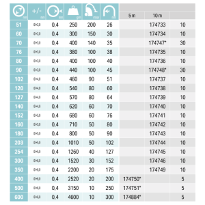 Šifra Dolžina cevi [m] Upogibni polmer [mm] Največji vakuum pri 23°C [mbar] Teža izdelka [g/m] Notranji premer cevi [mm] Zaloga Cena Nakup Natisni