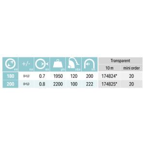 | Šifra | Debelina stene [mm] | Največji vakuum pri 23°C [mbar] | Upogibni polmer [mm] | Teža izdelka [g/m] | Notranji premer cevi [mm] | Zaloga | Cena | Nakup | Natisni |